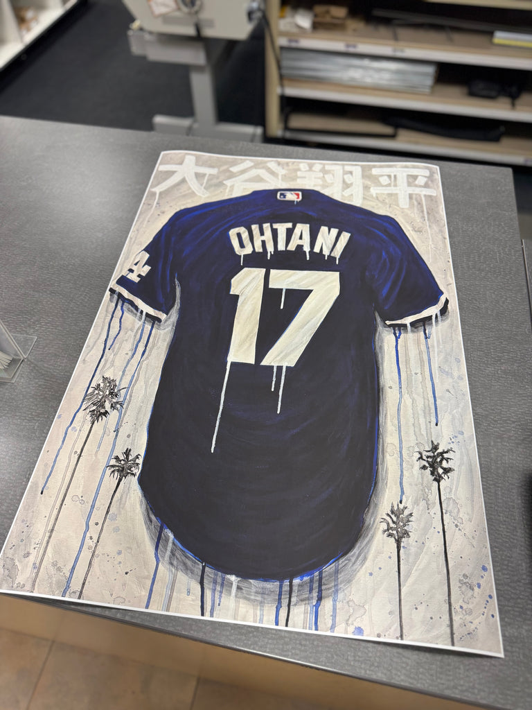 -Original art piece featured artist who has painted inside the Dodgers stadium , Created during the World Series when Ohtani hit a home run, included in a special segment for a super fan on CBS live news, this print captures the energy of the moment,